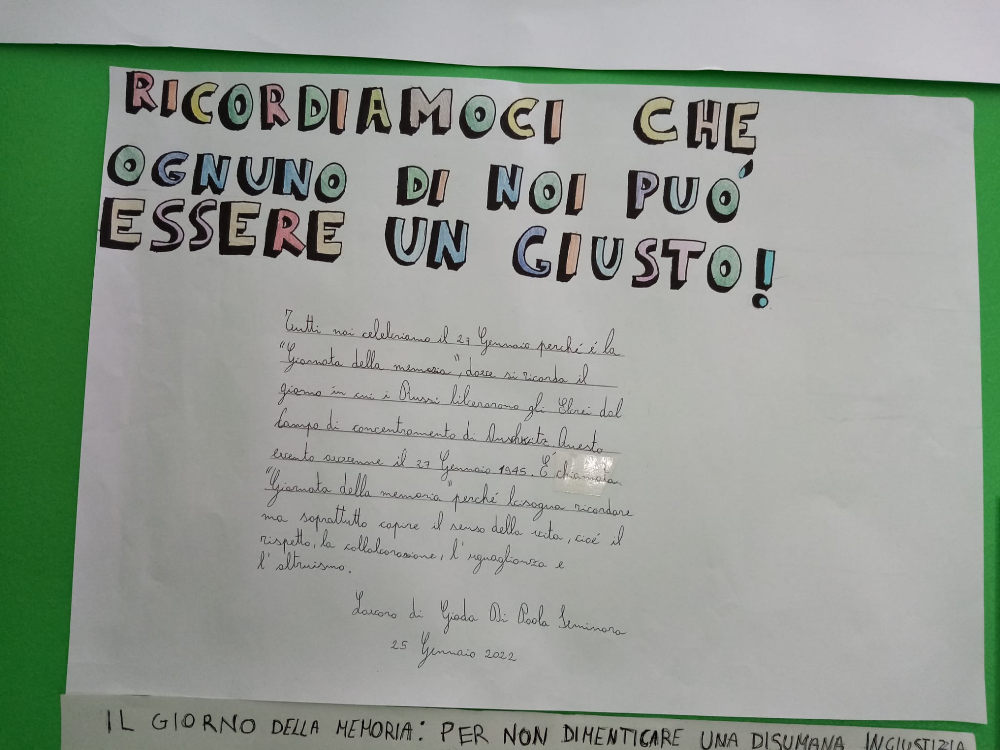 In queste settimane, quindi, abbiamo parlato della Shoah, consegnando a bambini e bambine, uomini e donne in divenire, insieme alla memoria di una tragedia, la memoria dei valori, quella dei Giusti, la forza dell'agire e del pensare in libertà.